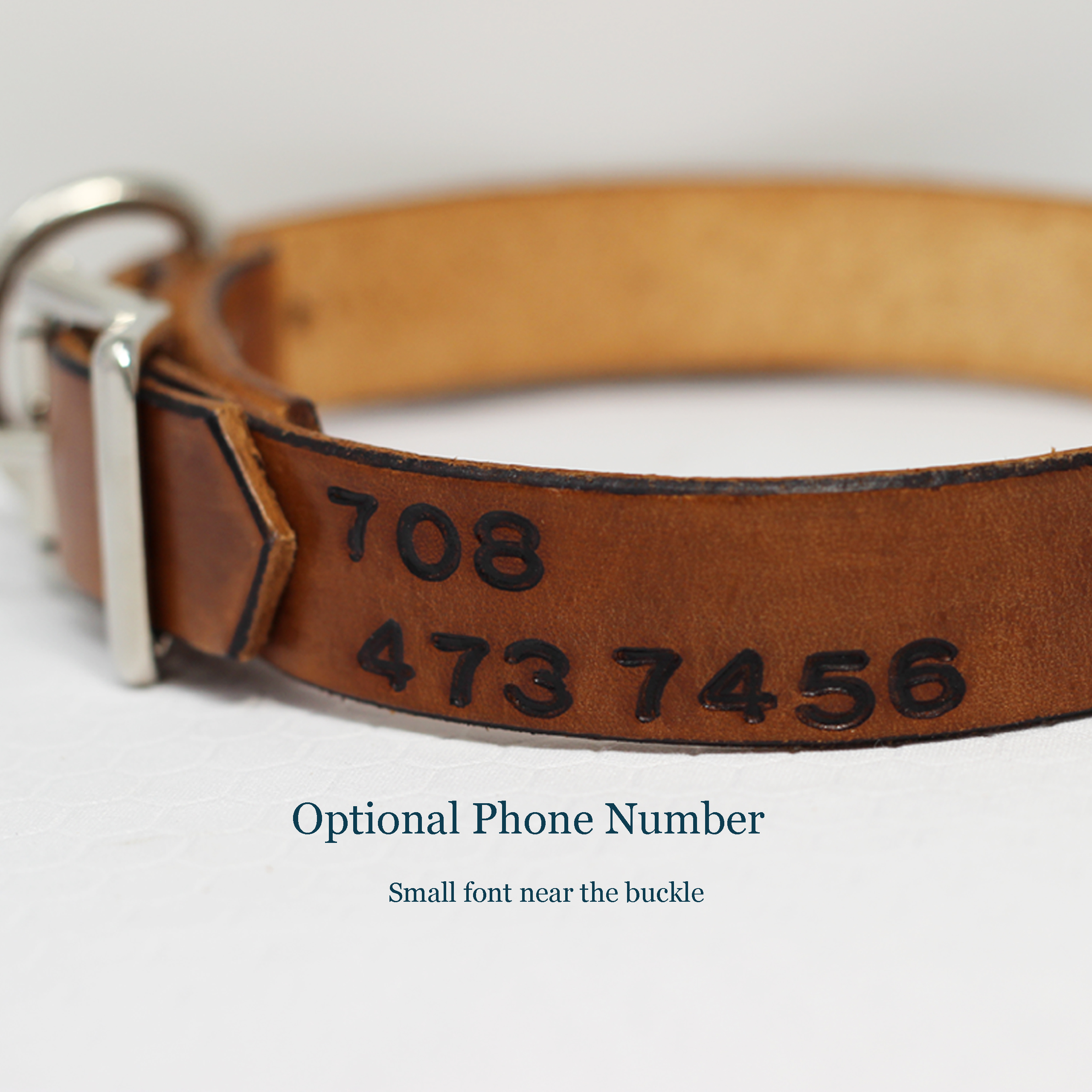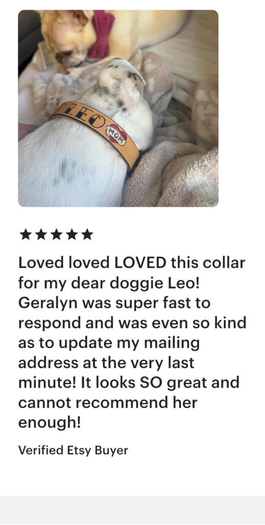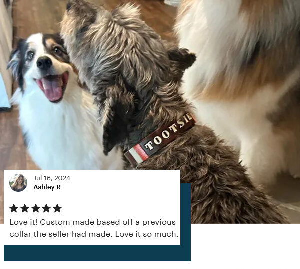 Custom leather dog collars, made one at a time. Each collar is sized to your dog’s neck. Edges are finished smooth for comfort. You can also pick and optional phone number near the buckle. I’ve been working with leather since childhood and making personalized dog collars since 2004. Every collar is made by me from start to finish.