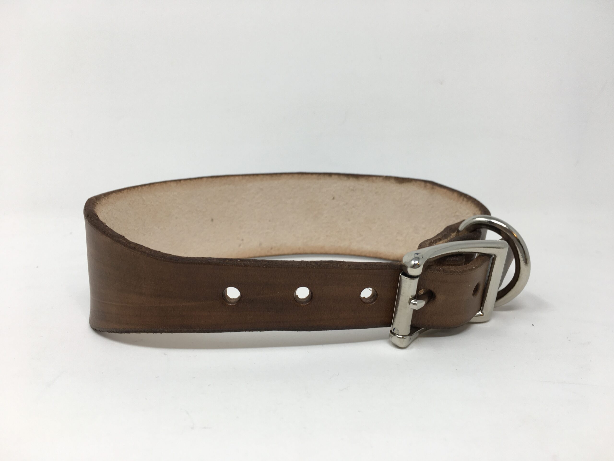 I make each collar after you order. The neck size you give me becomes the center hole, with room to adjust a little tighter or looser.