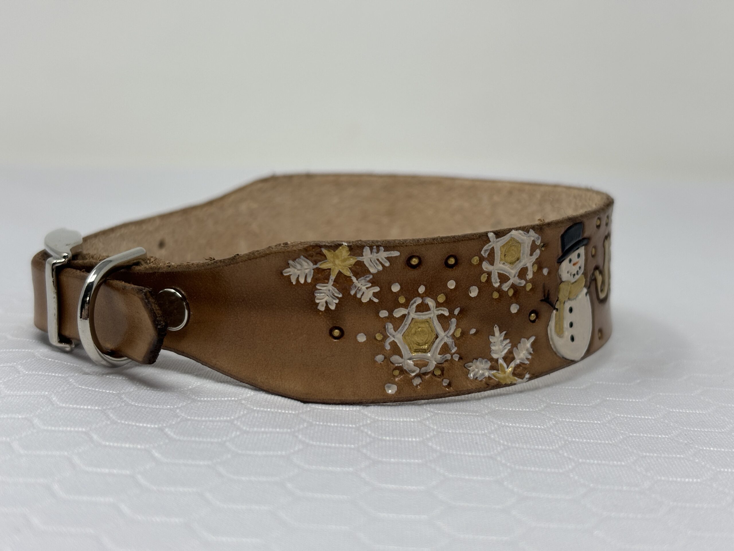 Snowman Leather Dog Collar